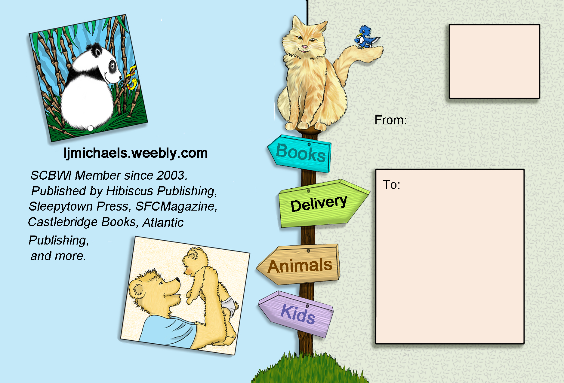 As an illustrator, I’ve discovered it’s necessary to start visually promoting books way before they are available for purchasing. One example is to build a buzz for the book by adding interior artwork (if the publisher allows it) to blog interviews. Nothing promotes a book better than visuals. Post cards (above) are also widely used to promote illustrators to traditional publishers, as a way to acquire picture book assignments.